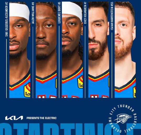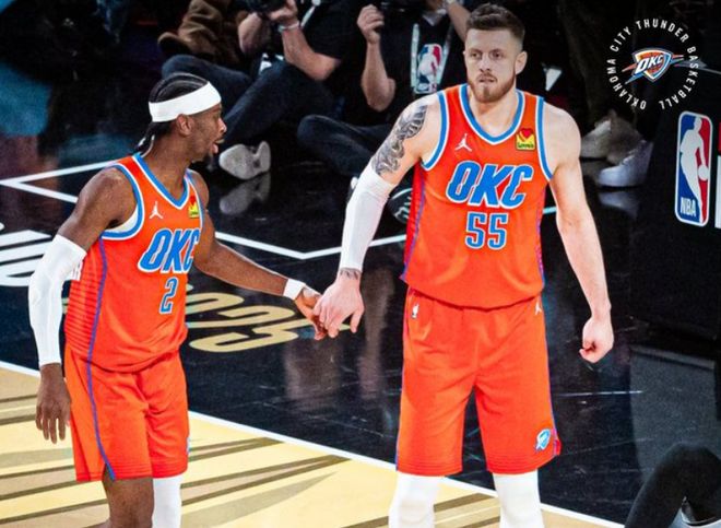 雷霆五虎霍姆格倫、多爾特、哈爾滕施泰因、杰倫、亞歷山大本賽季首次合體首發(fā)出戰(zhàn)。