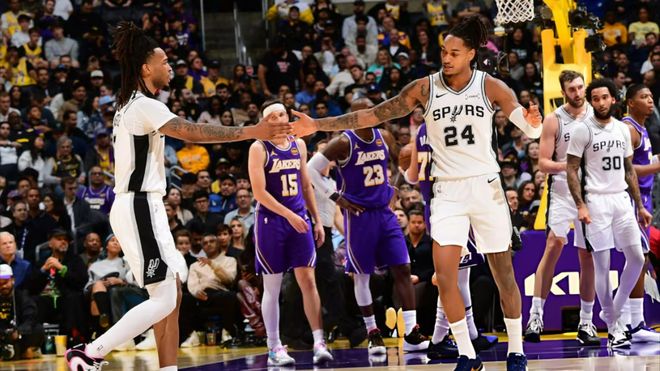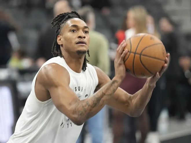 他的全面性體現(xiàn)在高階數(shù)據(jù)上:當(dāng)他在場時,馬刺每百回合能凈勝對手5.8分;而當(dāng)他下場,這一優(yōu)勢會縮水超過三分之二。他的on/off值(+3.8)在全隊主要輪換中高居第二,僅次于文班亞馬。