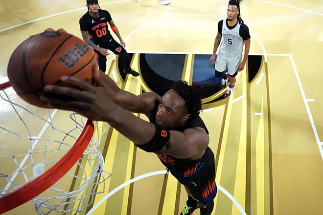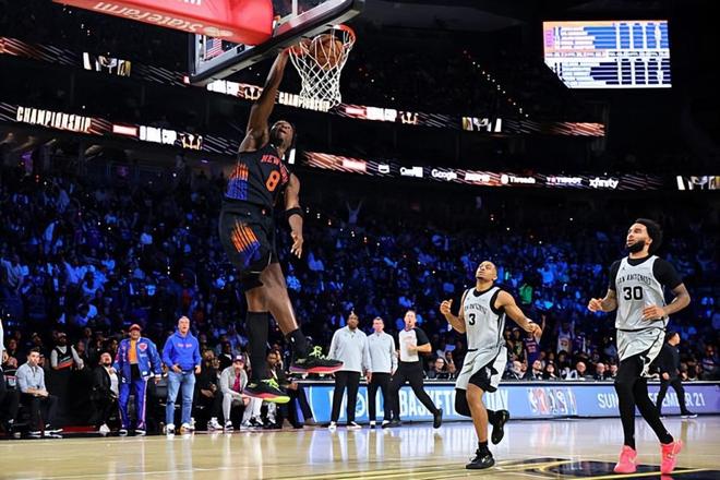 在此前的NBA杯決賽中,紐約尼克斯在末節(jié)完成了大逆轉(zhuǎn),以124比113戰(zhàn)勝了圣安東尼奧馬刺,成功拿到了本次NBA杯的總冠軍。